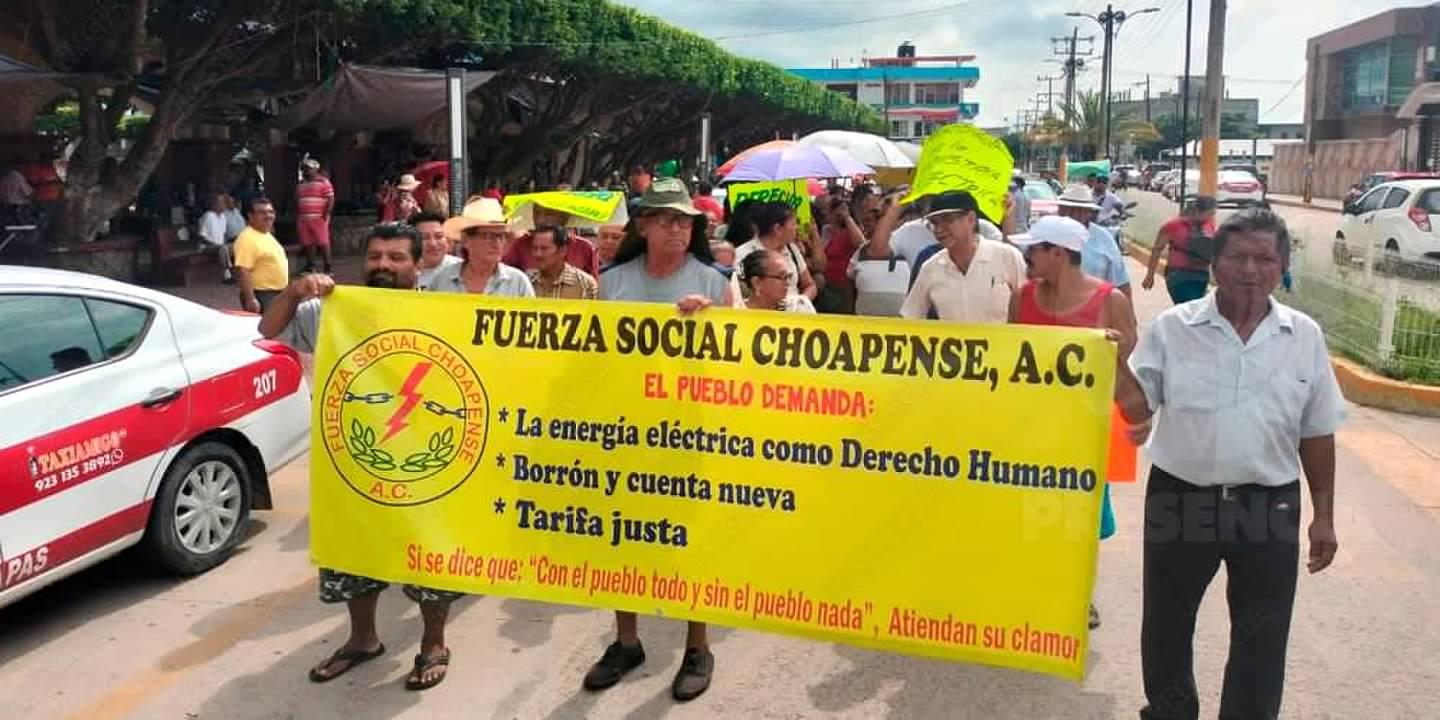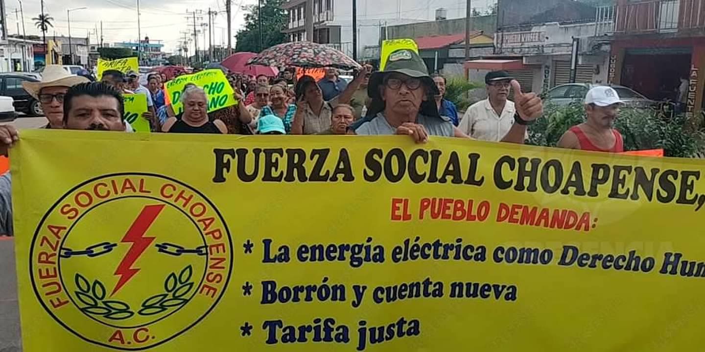 Una marcha-protesta pacífica se llevó a cabo la mañana de este jueves en el municipio de Las Choapas, donde integrantes de la Fuerza Social Choapense, A.C., alzaron la voz contra la Comisión Federal de Electricidad (CFE) en reclamo por las altas tarifas, la reclasificación de zonas y el reconocimiento de la energía eléctrica como un Derecho Humano.