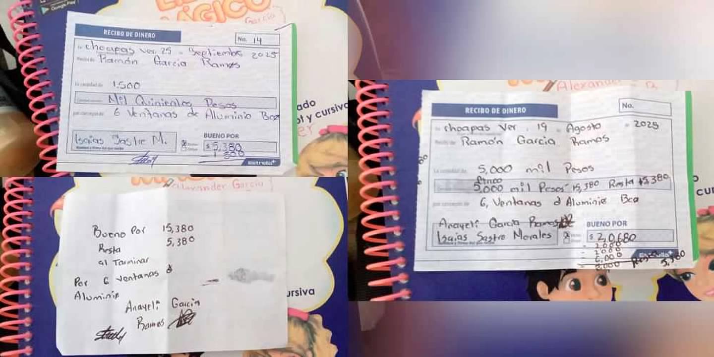 El señalado, identificado como Isaías Sastré Morales, junto con su esposa Anayeli García, recibieron el dinero en varias exhibiciones, firmando ambos los recibos correspondientes por concepto de compra de materiales y avance de trabajo. Sin embargo, la obra quedó inconclusa y los pocos ventanales que alcanzó a colocar presentan defectos y mala calidad.