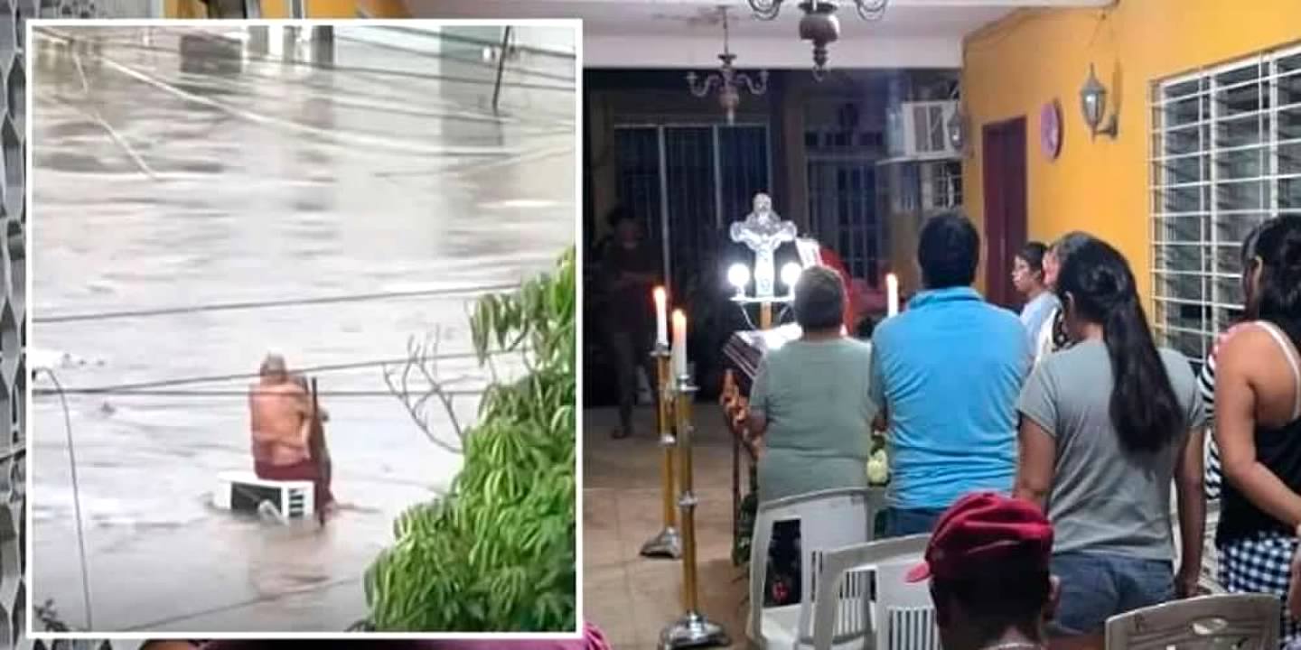 La pareja, ambos adultos mayores, fue fotografiada mientras se aferraba uno al otro en medio de la corriente en la colonia Morelos, imagen que fue difundida en redes sociales como símbolo de apoyo mutuo durante la emergencia.